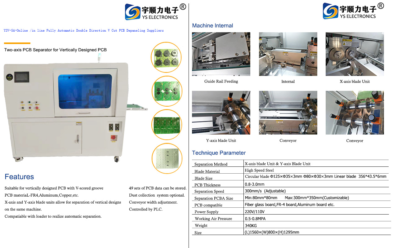 宇順力自主研發生產銷售為一體廠商,產品以分板機和熱壓機為主導,擴展操作方式涵蓋有激光分板機、PCB分板機、鋁基板分板機、LED燈條分板機、多刀分板機、滾刀分板機、走刀分板機、鍘刀分板機、沖壓分板機、沖床分板機、在線鑼板機、離線鑼板機、銑刀分板機、郵票孔分板機、曲線分板機、全自動井字分板機等一系列的電子分板設備。